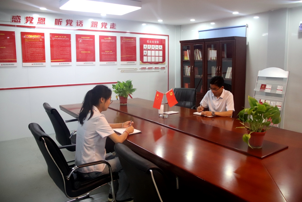 徐淮阜高速淮北段項目黨支部與黨員開展一對一談心談話,通過正面引導和警示提醒,引導黨員不忘初心、清正廉潔。