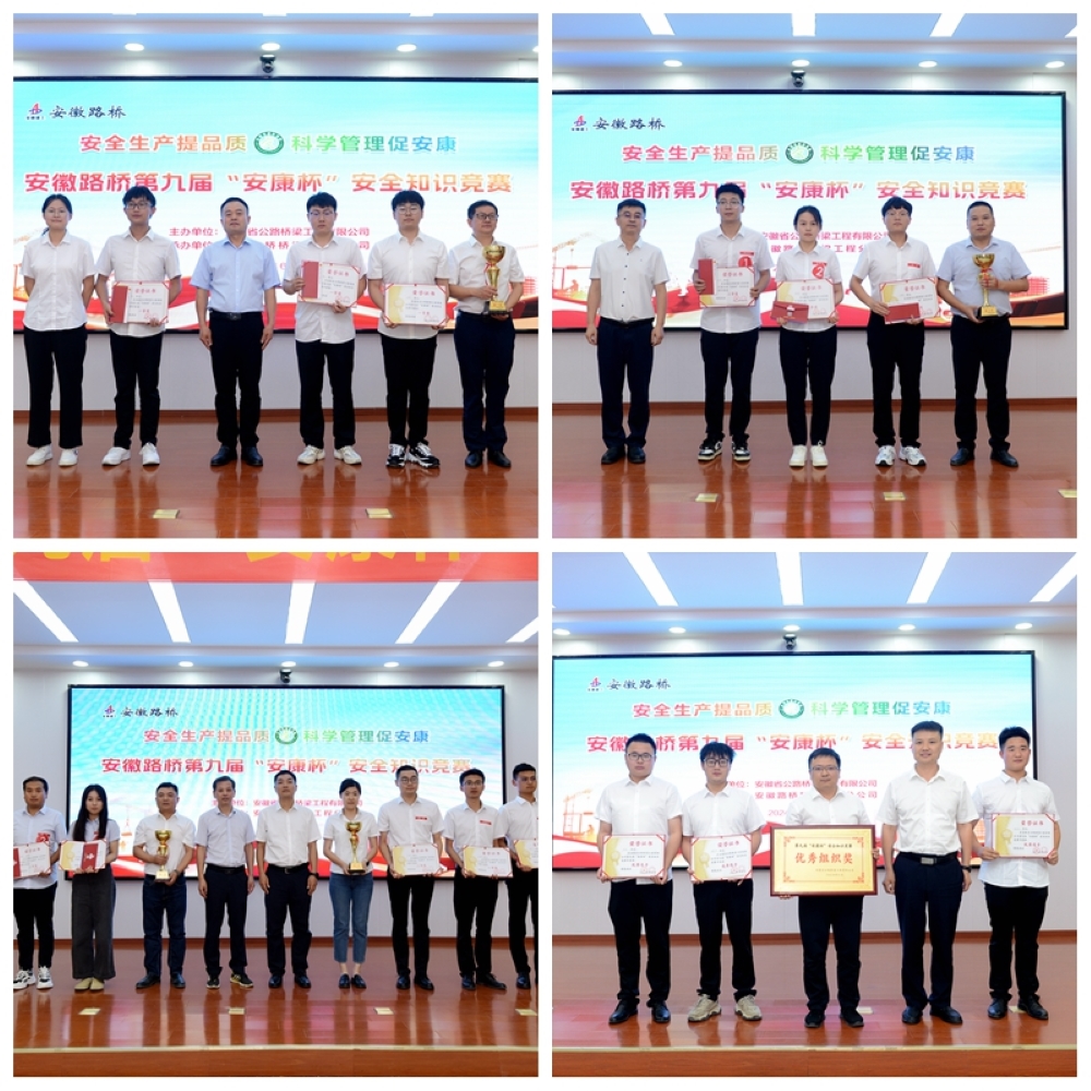 6月4日下午,安徽路橋第九屆“安康杯”安全知識(shí)競(jìng)賽成功舉辦。此次競(jìng)賽以“安全生產(chǎn)提品質(zhì) 科學(xué)管理促安康”為主題,旨在深化安全生產(chǎn)理念,提升員工安全素質(zhì)。安徽省建設(shè)建材工會(huì)(省住建廳文明辦)四級(jí)調(diào)研員邱亮出席活動(dòng)并作點(diǎn)評(píng)講話(huà),安徽省建設(shè)工程質(zhì)量與安全協(xié)會(huì)副秘書(shū)長(zhǎng)趙永生出席活動(dòng),公司黨委書(shū)記、董事長(zhǎng)錢(qián)申春致辭。建工控股工程管理部(安全監(jiān)察局)副部長(zhǎng)胡曉東,公司領(lǐng)導(dǎo)韋秀剛、石懷遠(yuǎn)及所屬各單位有關(guān)負(fù)責(zé)同志、職工代表共計(jì)80余人現(xiàn)場(chǎng)觀(guān)看比賽。