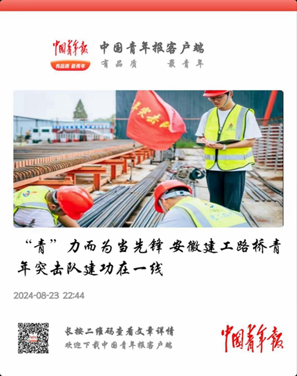 【名媒聚焦】中國(guó)青年報(bào):“青”力而為當(dāng)先鋒 安徽建工路橋青年突擊隊(duì)建功在一線