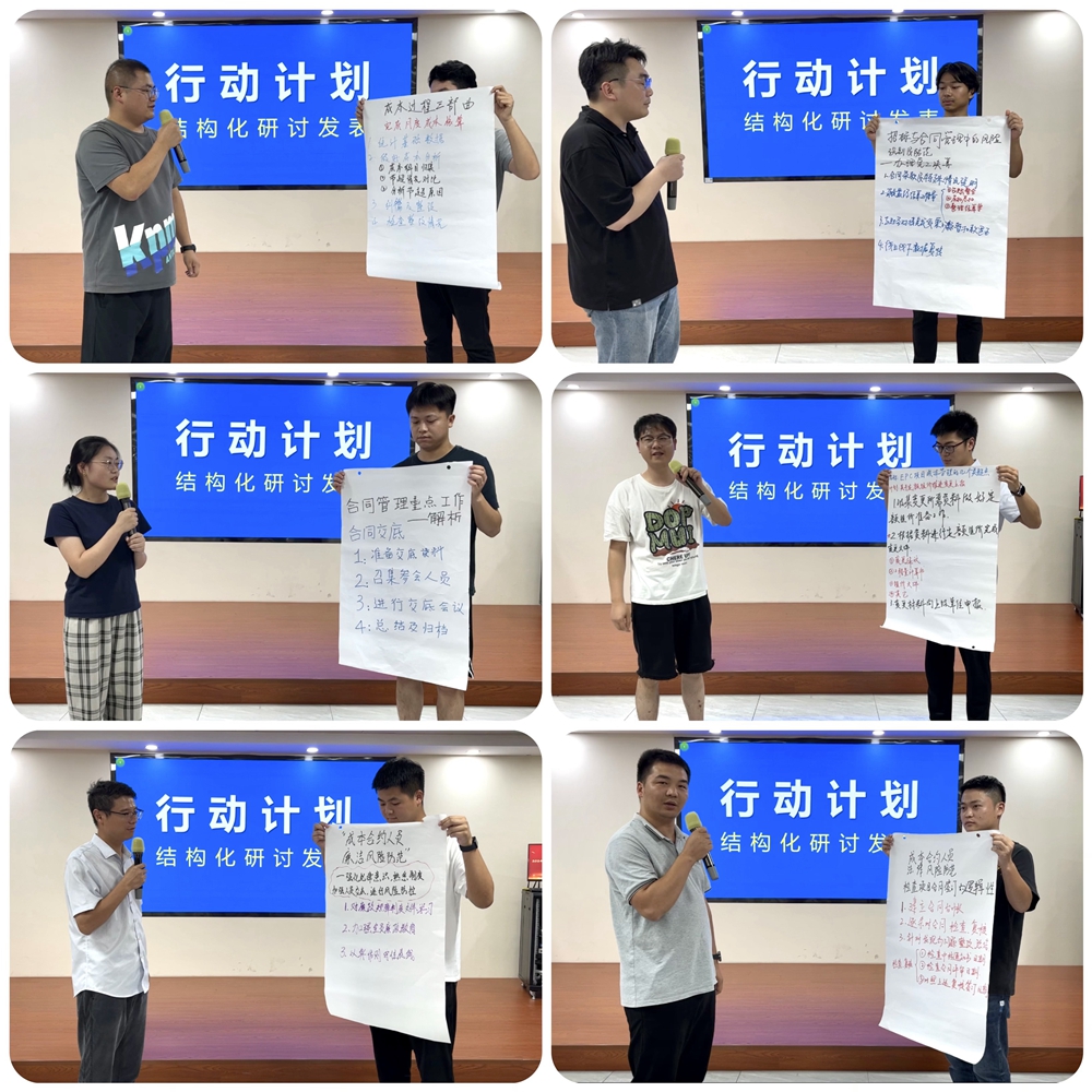 在為期三天兩晚的全封閉培訓(xùn)期間,全體學(xué)員認(rèn)真投入到培訓(xùn)過程中,積極交流互動(dòng),彼此取長(zhǎng)補(bǔ)短,高效完成了課程研討、項(xiàng)目案例萃取等多項(xiàng)培訓(xùn)任務(wù),并且通過深度座談、復(fù)盤總結(jié)、分享項(xiàng)目管理經(jīng)驗(yàn),沉淀了一系列項(xiàng)目成本合約管理場(chǎng)景化課程及優(yōu)秀項(xiàng)目管理案例。
