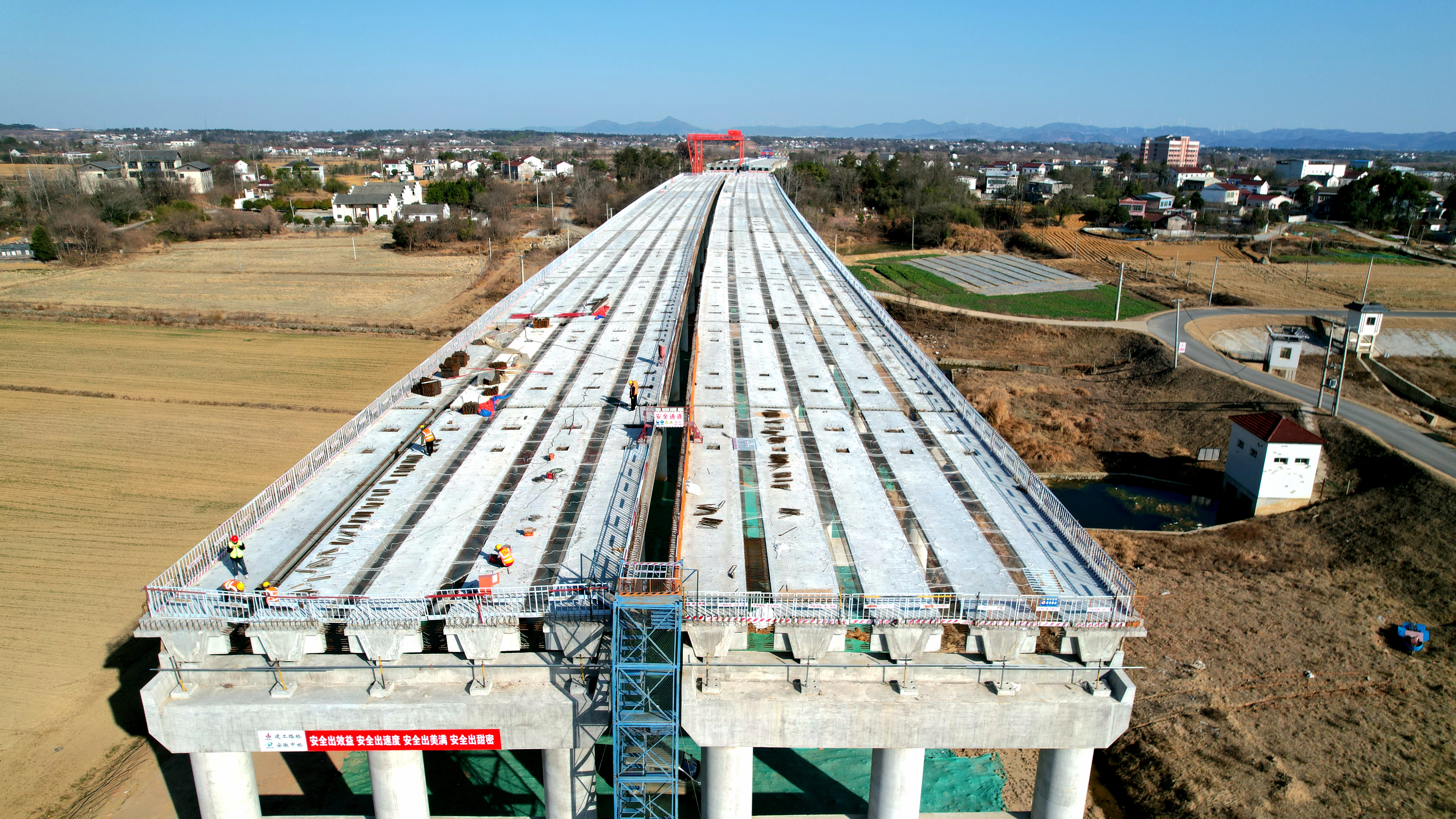 項(xiàng)目迅速啟動(dòng)水穩(wěn)拌合站建設(shè),并持續(xù)推進(jìn)皖水河特大橋橋面施工,全面吹響項(xiàng)目2025年攻堅(jiān)決勝號(hào)角。
