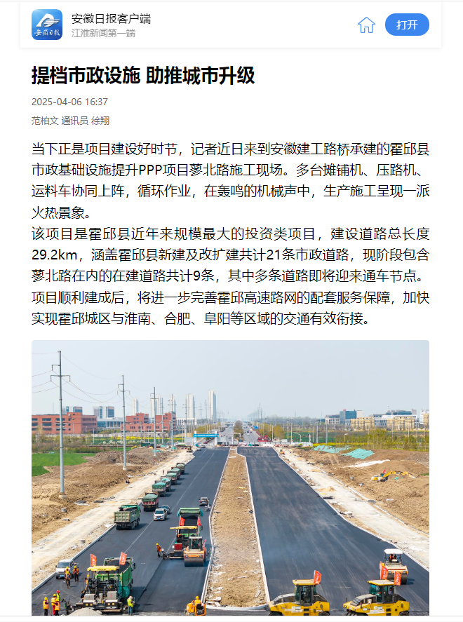 【名媒聚焦】央廣網(wǎng)、安徽日報(bào):安徽建工路橋霍邱PPP項(xiàng)目建設(shè)按下“加速鍵”