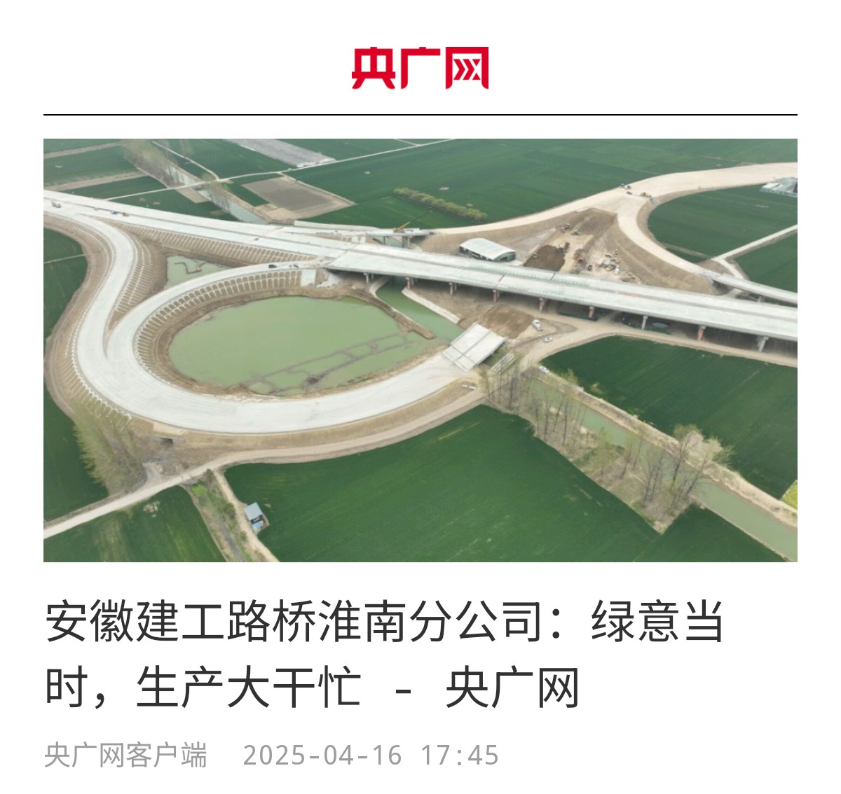 【名媒聚焦】央廣網(wǎng):安徽建工路橋淮南分公司——綠意當(dāng)時(shí),生產(chǎn)大干忙