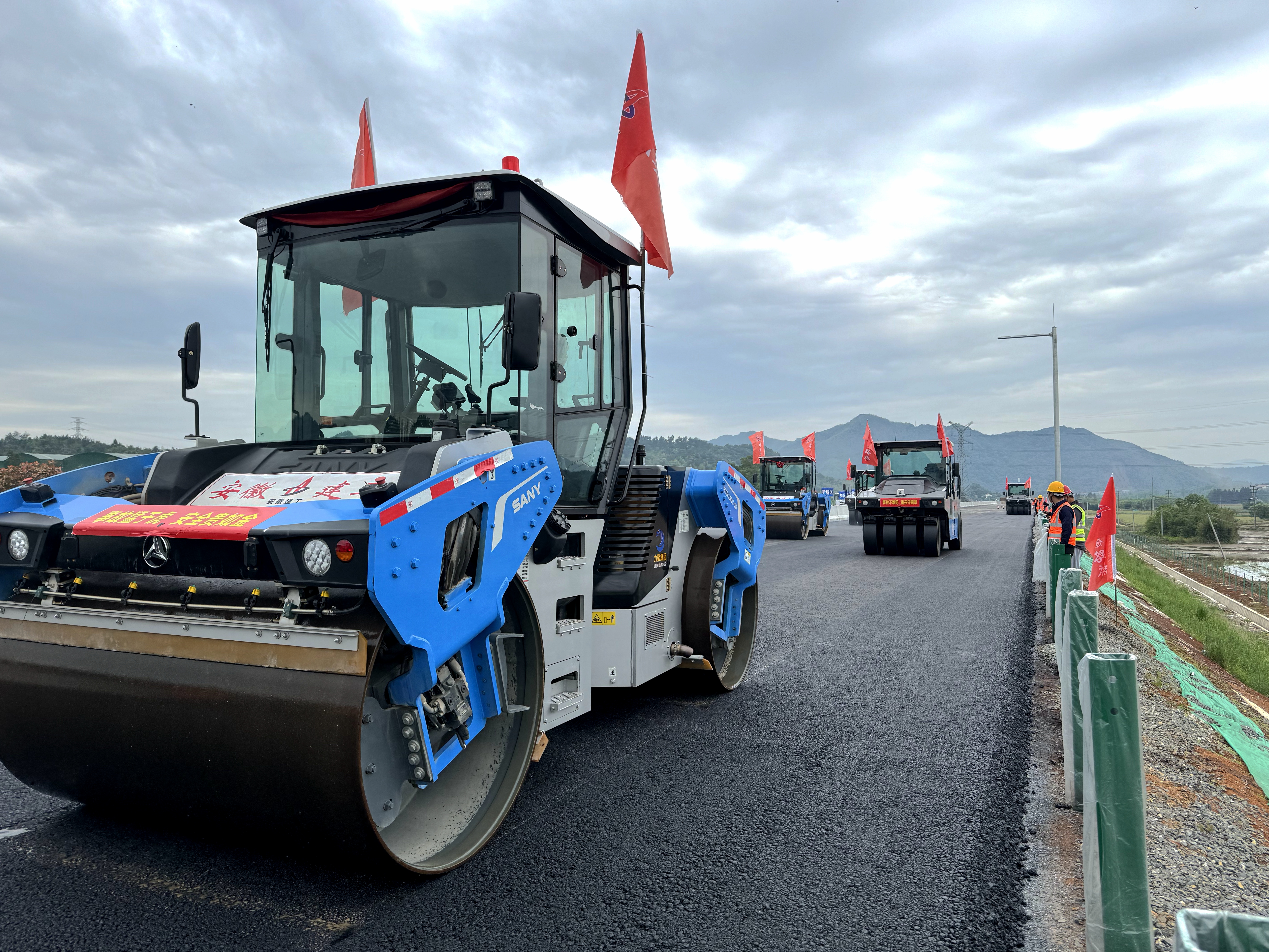 無人攤鋪助力工程建設提質增速。公司積極引入無人駕駛攤鋪碾壓技術,通過集成毫米波雷達的三級制動系統(tǒng),可以確保施工期間對障礙物的有效識別與即時響應,降低人為操作風險,并支持24小時不間斷作業(yè)模式,每小時攤壓長度超150米,能大幅提升施工速度,縮短工程周期。同時,該技術借助北斗衛(wèi)星高精度定位,能夠實現機群精確定位與路徑規(guī)劃,保持安全間距,保障攤壓作業(yè)的一致性和表面平整度,顯著提高路面壓實度及整體工程質量。