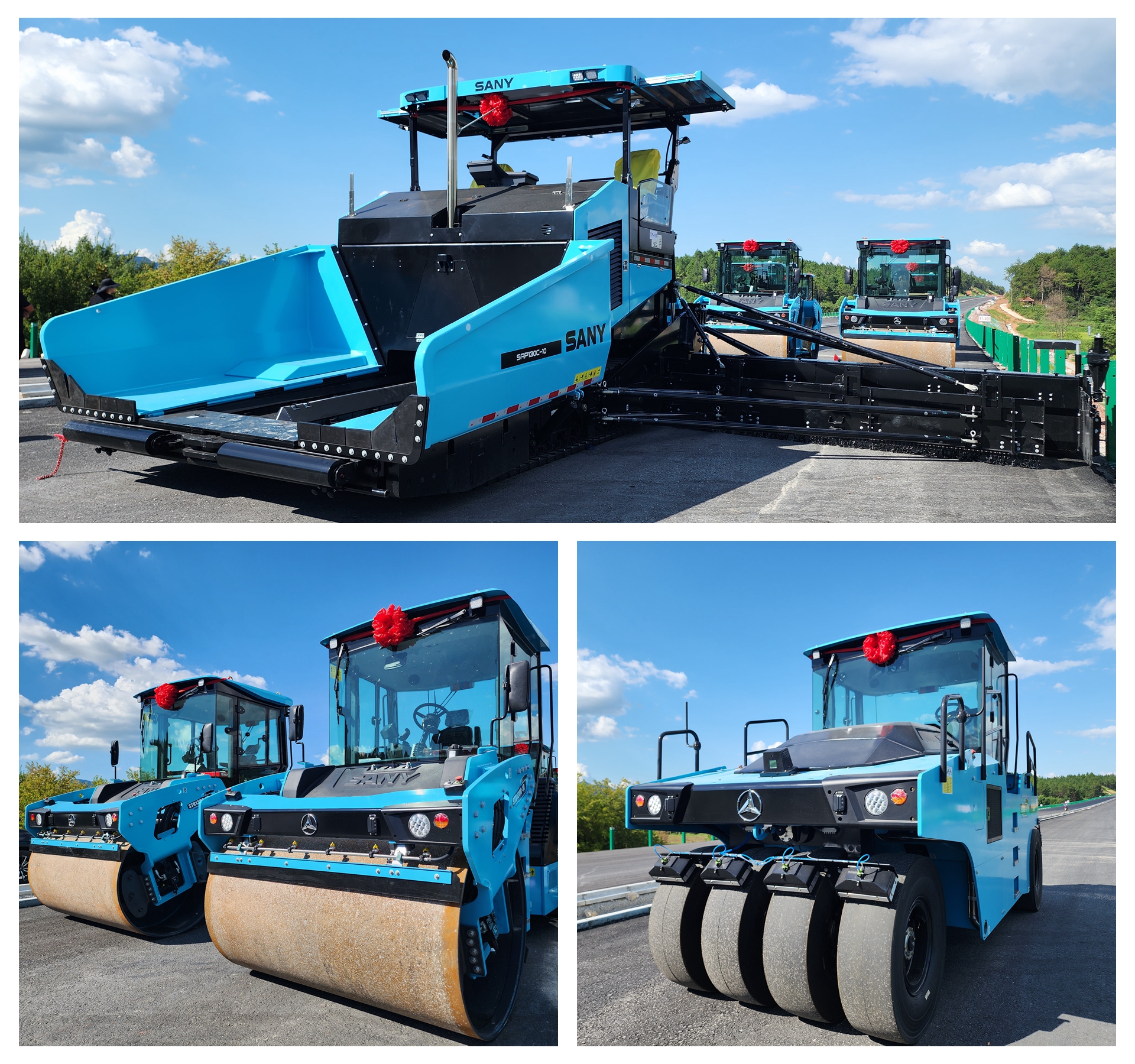 本次交付的無人智駕施工集群設備包括1臺攤鋪機、3臺雙鋼輪壓路機和4臺膠輪壓路機,搭載了先進視覺雷達融合避障、安全調(diào)度、電子圍欄等多重安全保護系統(tǒng),可根據(jù)工藝要求自動規(guī)劃機群路徑,生成標準化集群作業(yè)方案,并依據(jù)實時作業(yè)狀態(tài)與施工進度,實現(xiàn)機群的動態(tài)協(xié)同調(diào)度,并結合高精度定位、無線通訊和協(xié)同調(diào)度技術,實現(xiàn)質量可靠、安全高效的一鍵式作業(yè)。