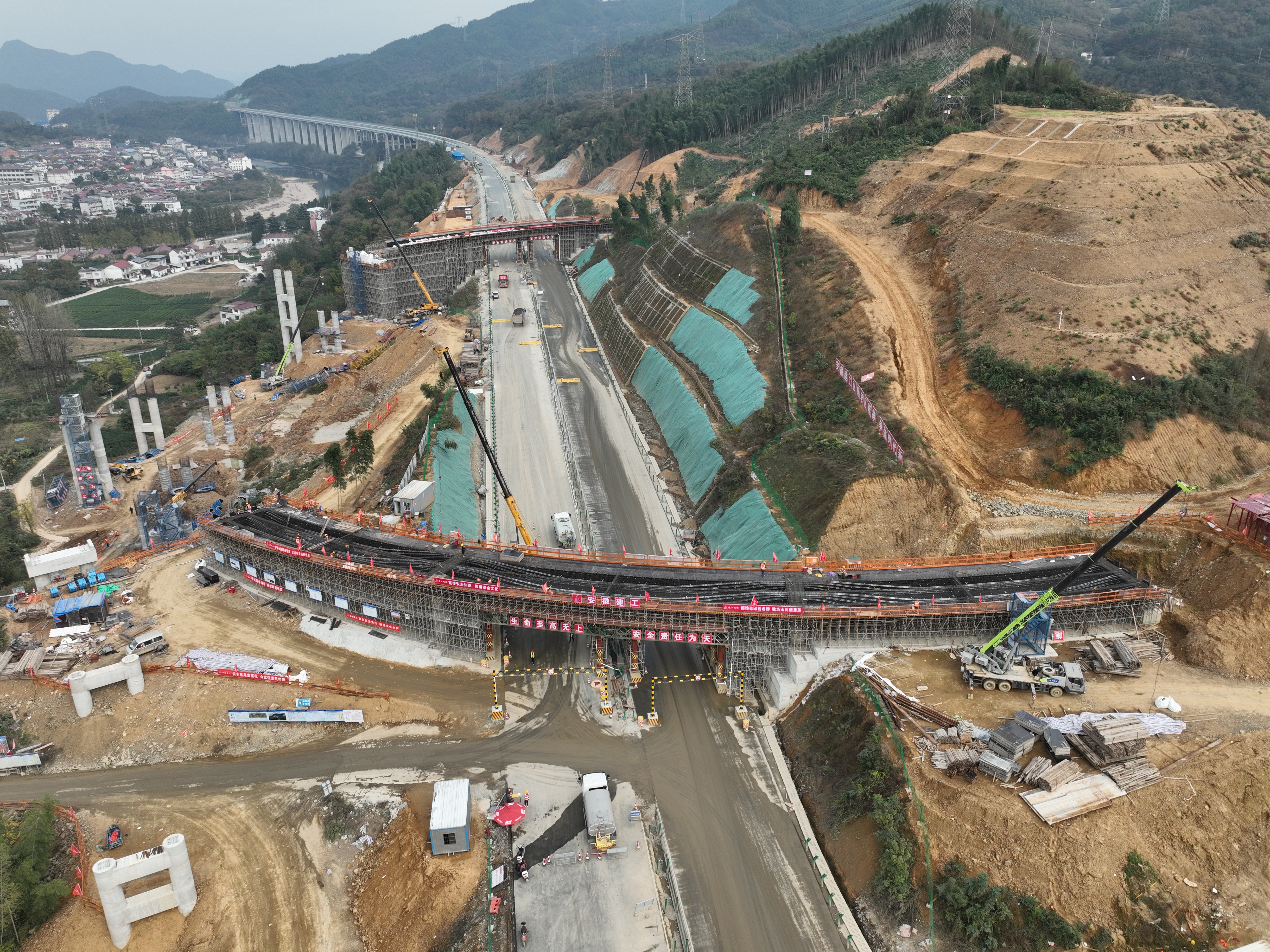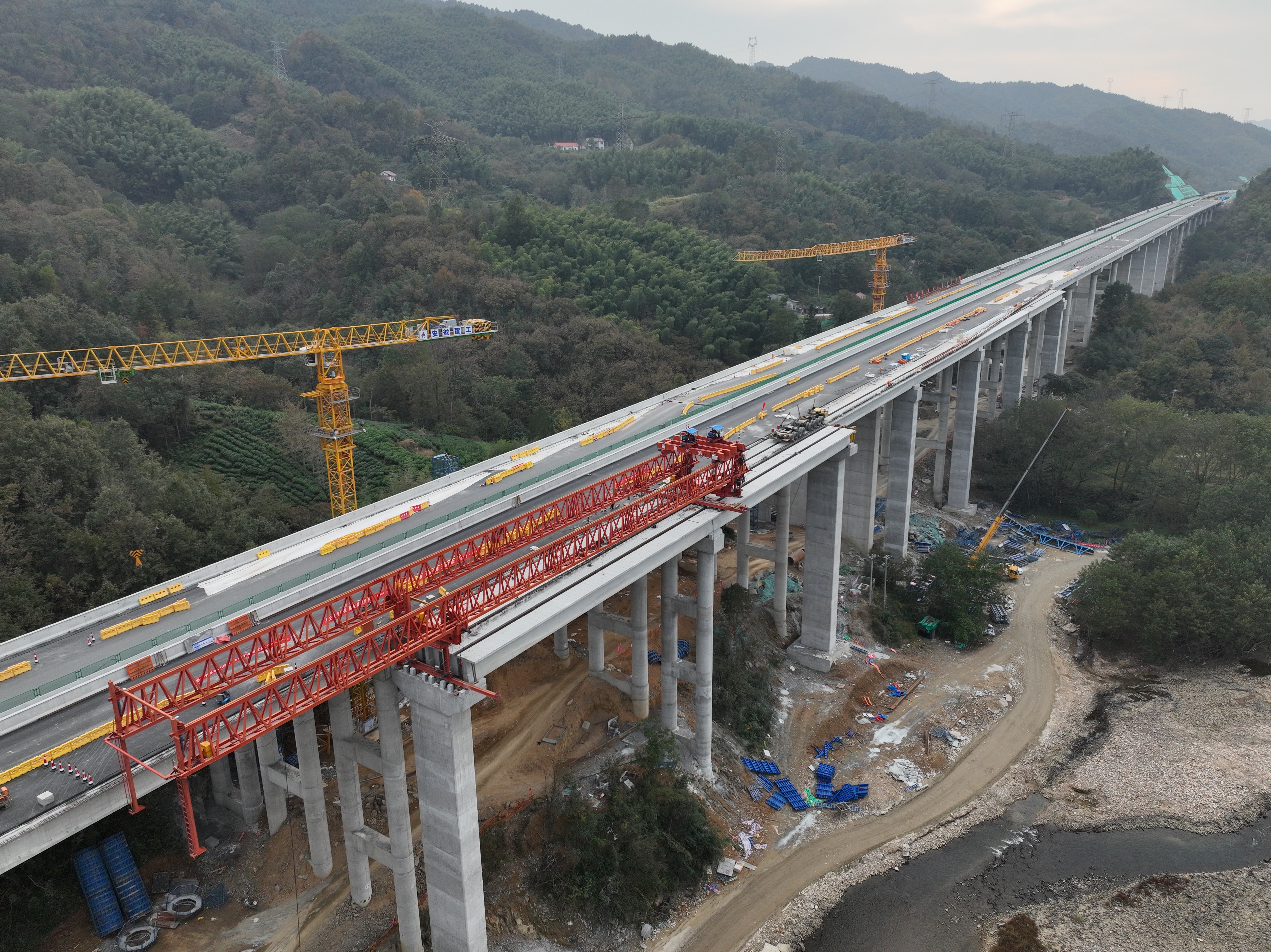 初冬的大別山層林盡染,安徽省六安市金寨縣天堂寨支線高速公路建設(shè)現(xiàn)場卻激戰(zhàn)正酣。11月,安徽建工路橋承建的一標(biāo)一分部實(shí)現(xiàn)雙重大突破:青山樞紐十里溪拼寬橋完成全線首片梁板毫米級精準(zhǔn)架設(shè),首聯(lián)現(xiàn)澆箱梁同步啟動澆筑,標(biāo)志著工程正式進(jìn)入橋梁上部結(jié)構(gòu)施工階段,400余名建設(shè)者正晝夜搶抓冬季施工黃金期。
