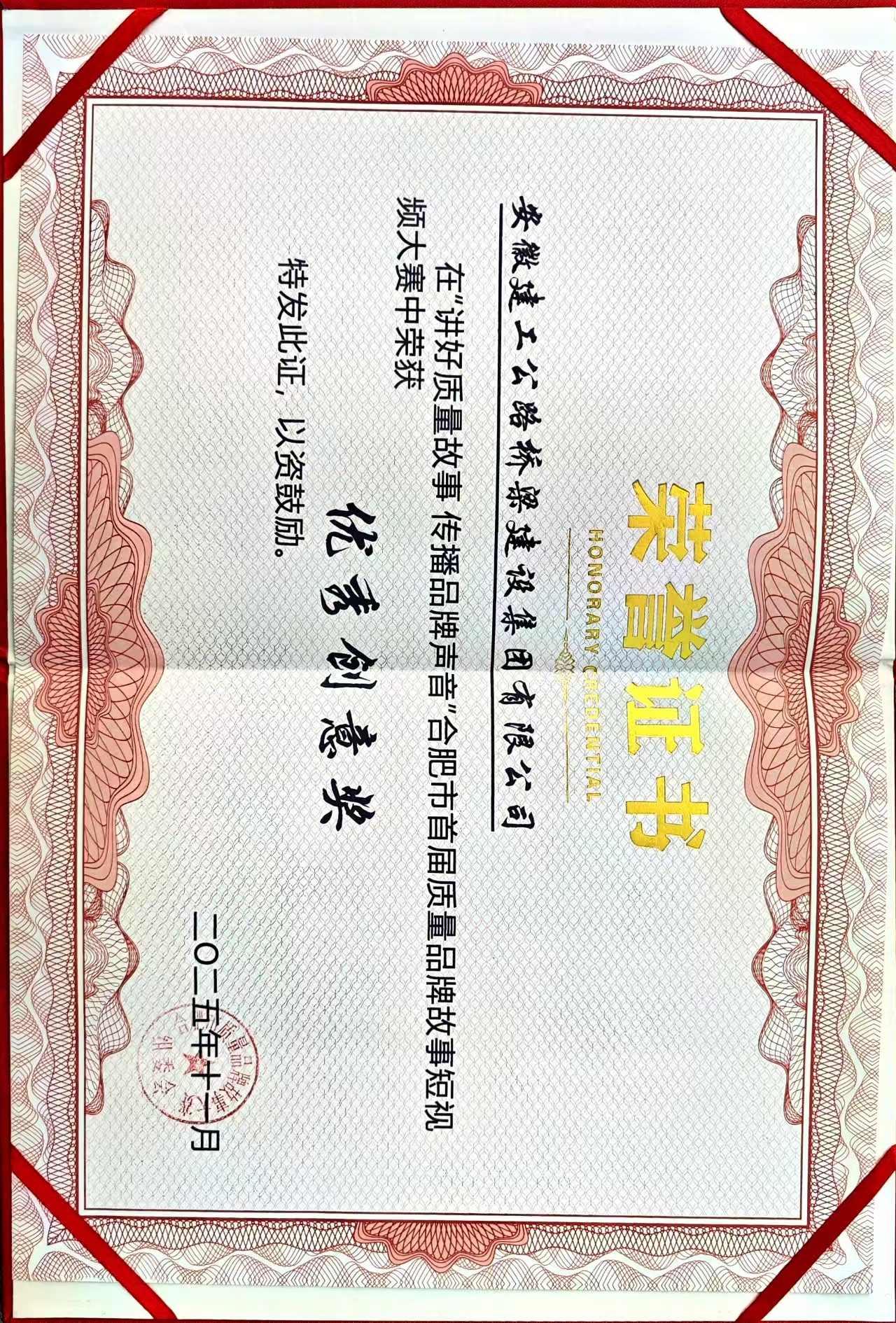 近日,合肥市2025年質(zhì)量品牌故事短視頻大賽頒獎典禮圓滿落幕。公司參賽作品《井中智造:360°旋轉(zhuǎn)智能布料機澆筑合肥質(zhì)量新高度》榮獲“優(yōu)秀創(chuàng)意獎”。