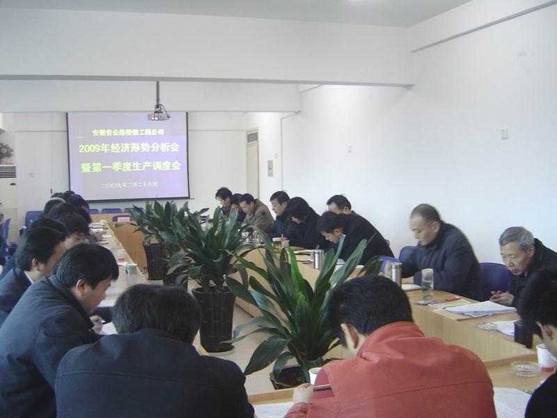 2月28日,公司在四樓會議室召開2009年經(jīng)濟(jì)形勢分析會暨第一季度生產(chǎn)調(diào)度會。公司領(lǐng)導(dǎo)班子成員、直屬(生產(chǎn))單位負(fù)責(zé)人、機(jī)關(guān)部門負(fù)責(zé)人、直屬項目部經(jīng)理、總工和財務(wù)負(fù)責(zé)人共計50余人參加了會議。會議由副總經(jīng)理盛明宏主持。