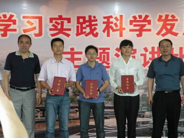 公司參加集團科學發(fā)展觀活動主題演講比賽獲佳績 發(fā)布時間:2009年05月20日 來源: 發(fā)布人: 作者: 瀏覽:5595次 5月11日下午,安徽建工集團公司學習實踐科學發(fā)展觀活動主題演講比賽在公司七樓會議室舉行,公司員工王晨晨、程德國兩位同志都取得三等獎的好成績。