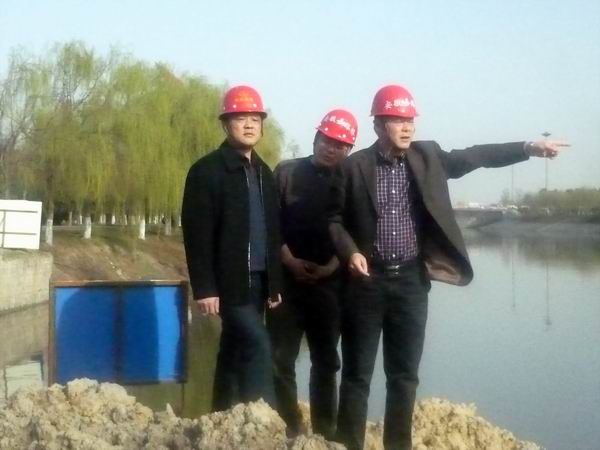 戴總在工程現(xiàn)場(chǎng)詳細(xì)詢問了宋斗灣路工程施工情況,特別是對(duì)跨南淝河橋橋梁墩柱、浮吊打設(shè)鋼管樁以及滿堂架現(xiàn)澆梁施工等進(jìn)行了探討,提出了一些建設(shè)性指導(dǎo)意見。