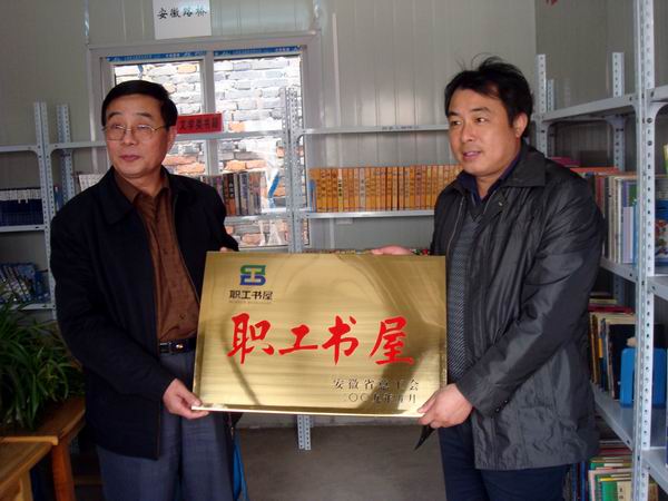 劉主席首先來到項(xiàng)目部職工書屋,察看了書屋的軟硬件設(shè)施及借閱情況,并聽取了項(xiàng)目經(jīng)理江仲明關(guān)于項(xiàng)目施工及職工書屋創(chuàng)建情況的匯報(bào)。劉主席對(duì)書屋的建設(shè)和管理予以了肯定和贊許,并對(duì)書屋更好的發(fā)展提出了希望和要求:一、立足實(shí)際、講求實(shí)效;二、營造氛圍,大力宣傳;三、實(shí)現(xiàn)資源共享,發(fā)揮最大效益;四、總結(jié)經(jīng)驗(yàn)、持續(xù)發(fā)展。邢應(yīng)梅書記還饒有興趣地翻看了圖書借閱登記表,了解職工借閱圖書情況,并對(duì)進(jìn)一步完善職工書屋的建設(shè)提出了幾點(diǎn)建議。隨后舉行了簡短的授牌儀式,劉主席向項(xiàng)目經(jīng)理江仲明轉(zhuǎn)授了由安徽省總工會(huì)頒發(fā)的“職工書屋”牌匾,并代表集團(tuán)工會(huì)向職工書屋贈(zèng)送了各類書籍300余冊(cè)。