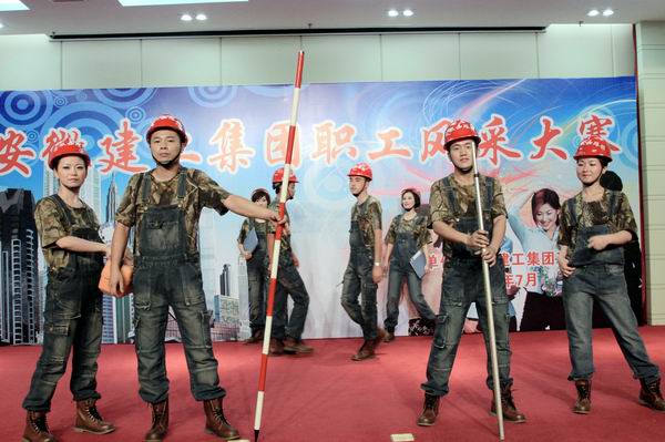 公司12名職工分別展示了三套服裝。第一套職業(yè)裝突破了傳統(tǒng)職業(yè)裝的局限,以背帶牛仔工裝褲為主,別具一格。再搭配安全帽、對(duì)講機(jī)等施工現(xiàn)場(chǎng)道具,將路橋的職業(yè)特性展示的淋漓盡致,在眾多參賽隊(duì)伍中獨(dú)樹(shù)一幟。第二套時(shí)裝,由六位女職工身著綴滿亮片的五彩短裙,在輕快動(dòng)感的音樂(lè)下,充分展現(xiàn)了女職工的青春活力。第三套藝術(shù)裝,以晚禮服為主,四位男職工風(fēng)度翩翩,四位女職工婀娜多姿,凸顯了路橋兒女的別樣情懷。