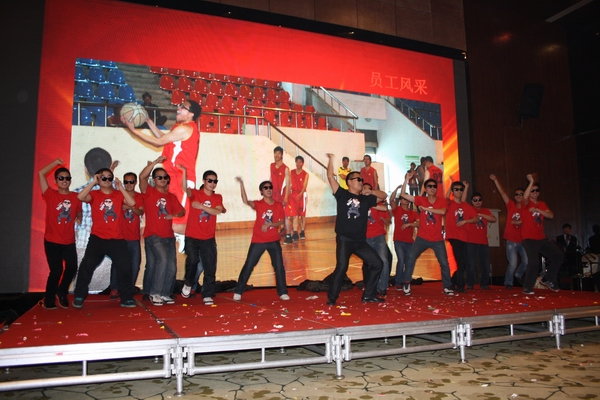 音域?qū)拸V,音色純正的男生獨(dú)唱《一生中最愛》,感情豐沛,對公司特有的情懷溢于言表;來自江西撫吉高速項(xiàng)目的歌曲串燒極具舞臺(tái)表現(xiàn)力,唱出了對公司的每位兄弟姐妹的美好祝愿;十年風(fēng)雨共濟(jì),十年不離不棄,宣寧項(xiàng)目自編自演的光影節(jié)目《十年》,黑白的影像,鏗鏘的獨(dú)白,展現(xiàn)了公司十年光輝歷程及對未來美好前景的祝愿,展現(xiàn)了鑄就恢弘藍(lán)圖的飽滿信心,引起了現(xiàn)場全體觀眾的內(nèi)心共鳴;后勤隊(duì)合唱《眾人劃槳?jiǎng)澊蟠?,讓我們感覺到了團(tuán)結(jié)就是力量,離夢想的步伐將會(huì)越來越近;宣貍五標(biāo)青年團(tuán)隊(duì)引領(lǐng)潮流,團(tuán)隊(duì)風(fēng)采展示融合時(shí)下流行的《江南style》舞蹈,引爆全場,將聯(lián)誼會(huì)氣氛推向高潮;一首《牽手》,真情流露,溫柔而富有感性;租賃公司情景劇《瘋狂走四方》更是搞笑吐糟,引起陣陣掌聲,再一次讓現(xiàn)場氣氛推向高潮。