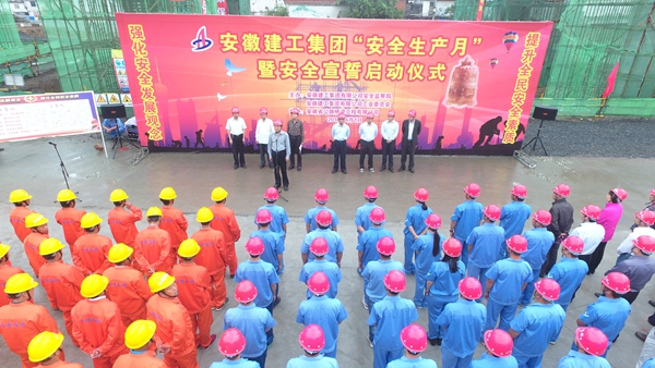 在集團公司工會主席徐曉光的帶領(lǐng)下,所屬各單位領(lǐng)導(dǎo)、安全管理人員,郎溪路項目全體管理人員及一線工人約200人舉起右手,鄭重宣誓:“我是一名安徽建工人,我鄭重宣誓,時刻注意安全,遵守安全法規(guī)。履行安全職責(zé),提高安全技能。杜絕三違現(xiàn)象,保證四不傷害。強化紅線意識,促進安全發(fā)展。為了家人幸福、企業(yè)發(fā)展,誓做建工‘安全人’”。莊嚴(yán)的誓詞久久回蕩在項目現(xiàn)場,更加堅定了全體建工人“強化紅線意識,促進安全發(fā)展”的信心和決心。