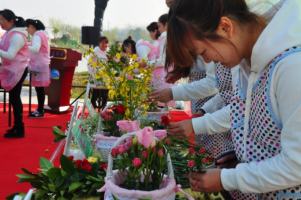 在主題為“最美的花兒獻(xiàn)給你”的花藝比賽中,來自兩家單位的十位女職工沉著冷靜,認(rèn)真挑選花材,巧妙構(gòu)思作品,優(yōu)雅的動作,嫻熟的技藝,使得一個個設(shè)計(jì)新穎、造型亮麗的花藝作品呈現(xiàn)在觀眾面前,為三月的龍舒大地增添了幾許春色。在 “百花齊放”踩氣球友誼賽中,兩家單位女職工自由組合,隨著主持人的一聲令下,選手們一沖而上,互相踩破對手的氣球,比賽氣氛熱烈,充滿激情,吶喊聲、歡笑聲匯聚成一條快樂的河流。在團(tuán)體跳繩比賽中,兩隊(duì)隊(duì)員齊心協(xié)力,熱情高漲,彩繩離地起,群鳳當(dāng)空舞,盡情演繹著巾幗魅力,把現(xiàn)場氣氛推向高潮。
