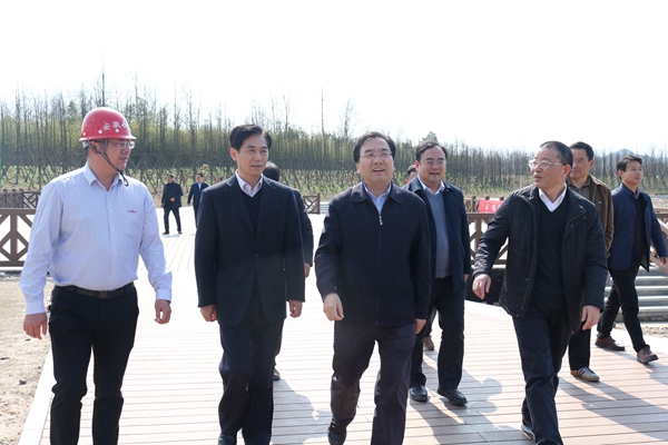 信長(zhǎng)星一行深入江心洲園區(qū)實(shí)地查看工程建設(shè)情況,詳細(xì)了解工程規(guī)劃、面積、投資等情況,對(duì)苗木種植養(yǎng)護(hù)及濕地建設(shè)提出了指導(dǎo)性意見。信長(zhǎng)星強(qiáng)調(diào),在施工過程中一定要進(jìn)一步加大對(duì)濕地生態(tài)系統(tǒng)的保護(hù),提高生物多樣性。