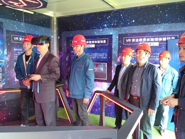 王總一行深入項目現(xiàn)場,實地了解了黃河特大橋項目施工的重點和難點,仔細查看了正在進行的圍堰施工,詳細詢問了BIM技術(shù)在質(zhì)量管控中的應(yīng)用,查看了現(xiàn)場安全管理措施落實情況,還饒有興趣地參加了VR安全體驗館的體驗活動。