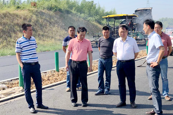 省交控集團(tuán)總經(jīng)理錢東升蒞臨廣寧高速路面項目檢查指導(dǎo)工作 發(fā)布時間:2018年08月10日 來源:路面公司 發(fā)布人: 作者:圖/文 褚祥 葛偉 瀏覽:3498次 8月8日,省交控集團(tuán)總經(jīng)理錢東升、建管部部長蘇新國一行蒞臨廣寧高速路面項目檢查指導(dǎo)工作,廣寧高速項目辦主任方昱陪同。 錢東升一行深入瀝青施工現(xiàn)場,對正在進(jìn)行的瀝青攤鋪施工進(jìn)行了檢查指導(dǎo)。錢東升要求項目部要統(tǒng)籌應(yīng)對此輪材料價格上行壓力,多措并舉加快瀝青料的儲備,積極搶抓有利天氣進(jìn)一步加快施工進(jìn)度;同時要做好防暑降溫工作,確保廣寧高速按既定時間節(jié)點順利通車。