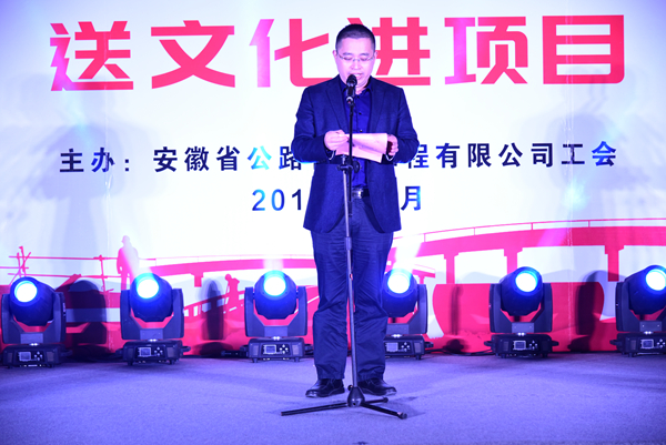 省建設(shè)建材工會主任程德旺應(yīng)邀致辭,他表示本次送文化進(jìn)項(xiàng)目,把職工喜聞樂見的文化形式送到一線,營造健康向上的文化氛圍,增強(qiáng)了企業(yè)的凝聚力和向心力。希望省路橋公司廣大建設(shè)者再接再厲,把干事創(chuàng)業(yè)的熱情貫穿企業(yè)高質(zhì)量發(fā)展全過程,為安徽省建筑業(yè)的發(fā)展作出更大貢獻(xiàn)。