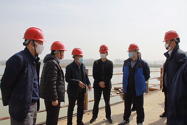 章后忠、張玉強(qiáng)一行詳細(xì)了解了項(xiàng)目疫情防控及復(fù)工進(jìn)展情況,實(shí)地檢查了澮河特大橋樁基施工。