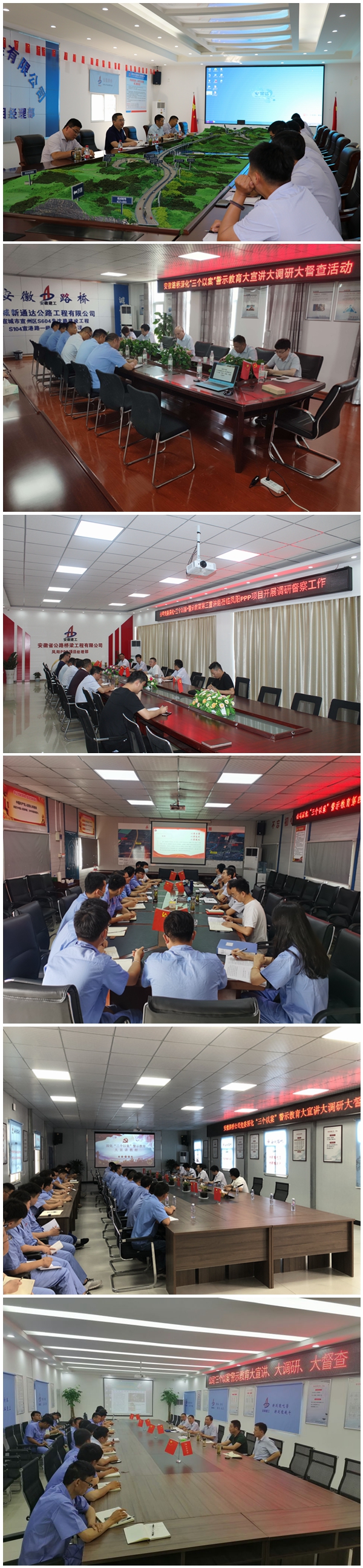 近日,公司黨委深化“三個以案”警示教育9個宣講組分別深入黃河特大橋項目、宣城PPP項目、蒙城PPP項目、明巢高速05標(biāo)等省內(nèi)外重點項目、偏遠(yuǎn)項目集中開展大宣講、大調(diào)研、大督查,宣講警示教育工作要求和典型案例,調(diào)研解決項目一線存在的困難和問題,廣泛聽取職工意見建議。