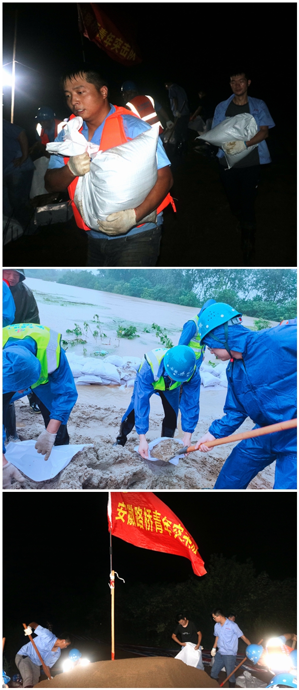 這群95后新員工剛到項目上工作沒有幾天,就面臨了一次“勞其筋骨”的大考。但面對困難,他們沒有退縮。 一些項目青年聞“汛”而動,自發(fā)組織青年志愿者、青年突擊隊奔赴前線,吹響青春集結(jié)號。在抗洪一線,他們肩扛手提,裝袋、搬運、填筑,汗水浸透了衣服,實在干不動了,席地而坐或杵著鐵鍬稍作休息,隨后繼續(xù)投入戰(zhàn)斗。在“青年突擊隊”紅旗的輝映下,他們與洪水搏擊,與險情對戰(zhàn),團(tuán)結(jié)協(xié)作,筑起了一道道“青春堤壩”,阻擋了洪水肆虐的腳步,“后浪”搏擊洪災(zāi),有力地推進(jìn)了搶險進(jìn)度。