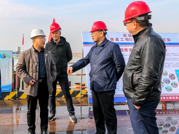 羅寧一行先后查看了澮河特大橋主橋鋼梁架設(shè)、橋面板安裝、橋面系施工現(xiàn)場,聽取項目工程概況、特大橋施工管理等方面的匯報,詳細(xì)了解項目趕超進度、達產(chǎn)滿產(chǎn)、優(yōu)化工藝等做法,并圍繞施工重難點、安全文明管理進行了深入交流。羅寧對項目取得的成績給予充分肯定,希望項目繼續(xù)保持大干狀態(tài),全力奪取2021年“縣縣通”高速的最終勝利。