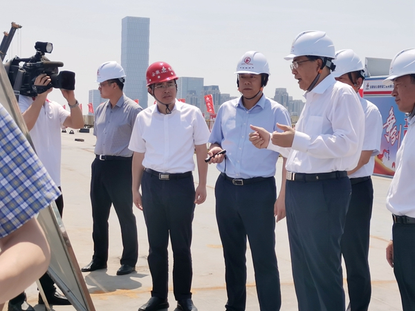 在項(xiàng)目主線橋鋼箱梁施工現(xiàn)場(chǎng),李錦斌聽(tīng)取了公司黨委書(shū)記、董事長(zhǎng)錢申春關(guān)于項(xiàng)目概況、施工工藝和施工進(jìn)度的匯報(bào),仔細(xì)詢問(wèn)了項(xiàng)目風(fēng)險(xiǎn)隱患識(shí)別、風(fēng)險(xiǎn)防范舉措、如何保障安全施工等工作開(kāi)展情況,對(duì)項(xiàng)目的安全生產(chǎn)工作表示肯定。李錦斌再三叮囑,要堅(jiān)持綜合管控、分類治理、壓實(shí)責(zé)任、全面覆蓋,做到排查精準(zhǔn)、管理精細(xì)、措施精當(dāng),有效化解各類安全生產(chǎn)風(fēng)險(xiǎn),真正實(shí)現(xiàn)技術(shù)過(guò)關(guān)、施工過(guò)關(guān)、質(zhì)量過(guò)關(guān)、安全過(guò)關(guān)。