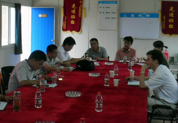 公司各部門負責人首先對項目部各部門工作情況進行對口檢查考評??荚u結束后,各部門負責人先后在項目部會議室對考評情況作了通報,指出了檢查中出現(xiàn)的問題,并提出了具體的改正建議。項目部各部門對存在問題做了詳細記錄,表示近期內(nèi)將對存在問題進行認真整改。