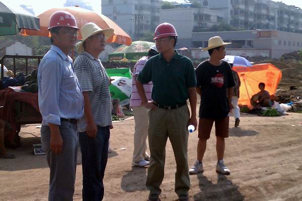 在市政宋斗灣路工程全力進行橋面系及濱河路引橋施工的重要時刻,在合肥市暢通一環(huán)J標工程道排、電排及樁基等全面施工階段,市重點局領導一行前往一環(huán)J標工地和宋斗灣路工地檢查指導工作,項目經理李建成、副經理王明禮全程陪同。